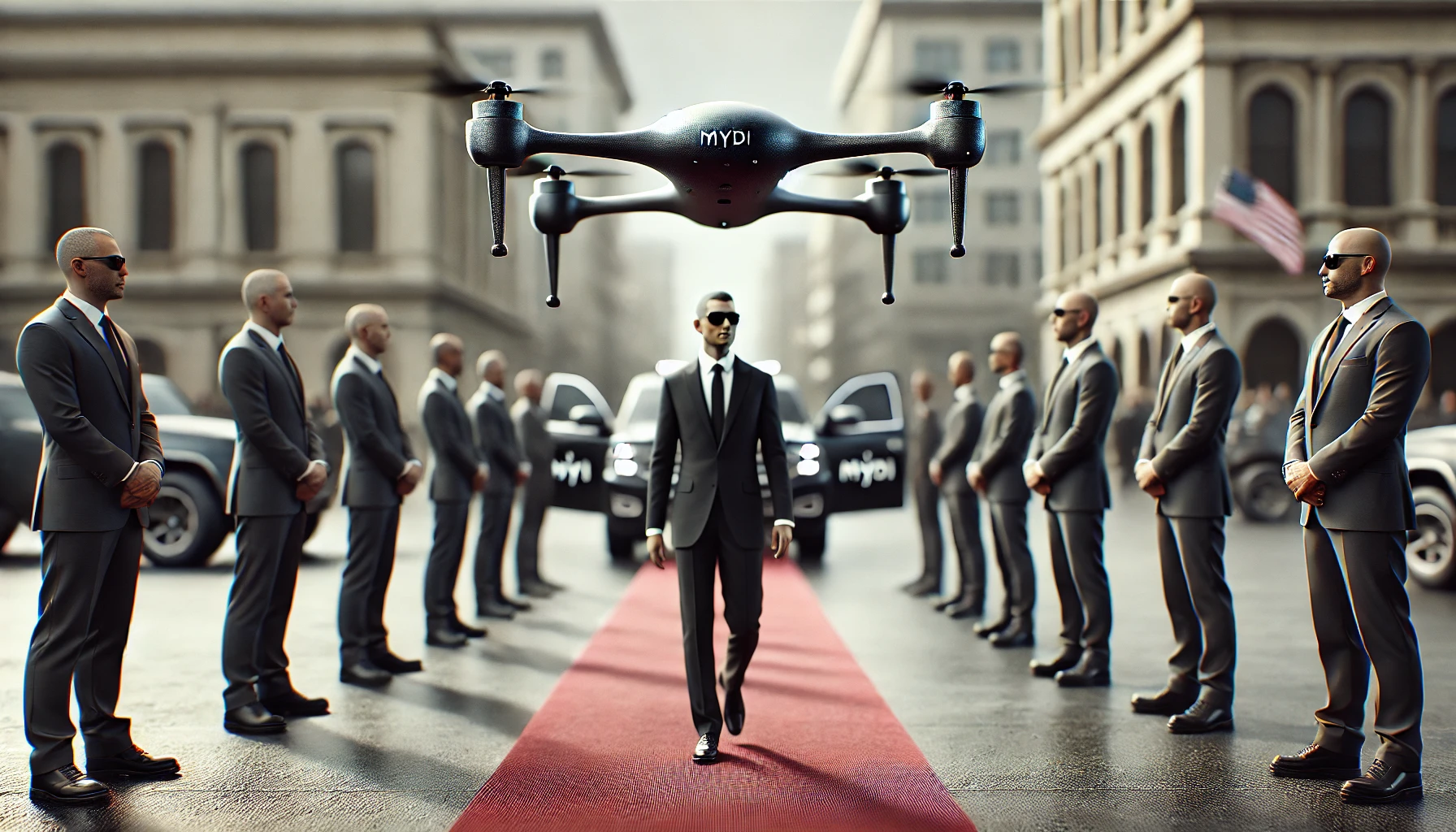 The goal is not to replace human bodyguards, but to enhance them. Human intuition, judgment, and presence remain irreplaceable. MYDI simply extends their awareness vertically and digitally—adding a constant aerial perspective that no single person can maintain alone.