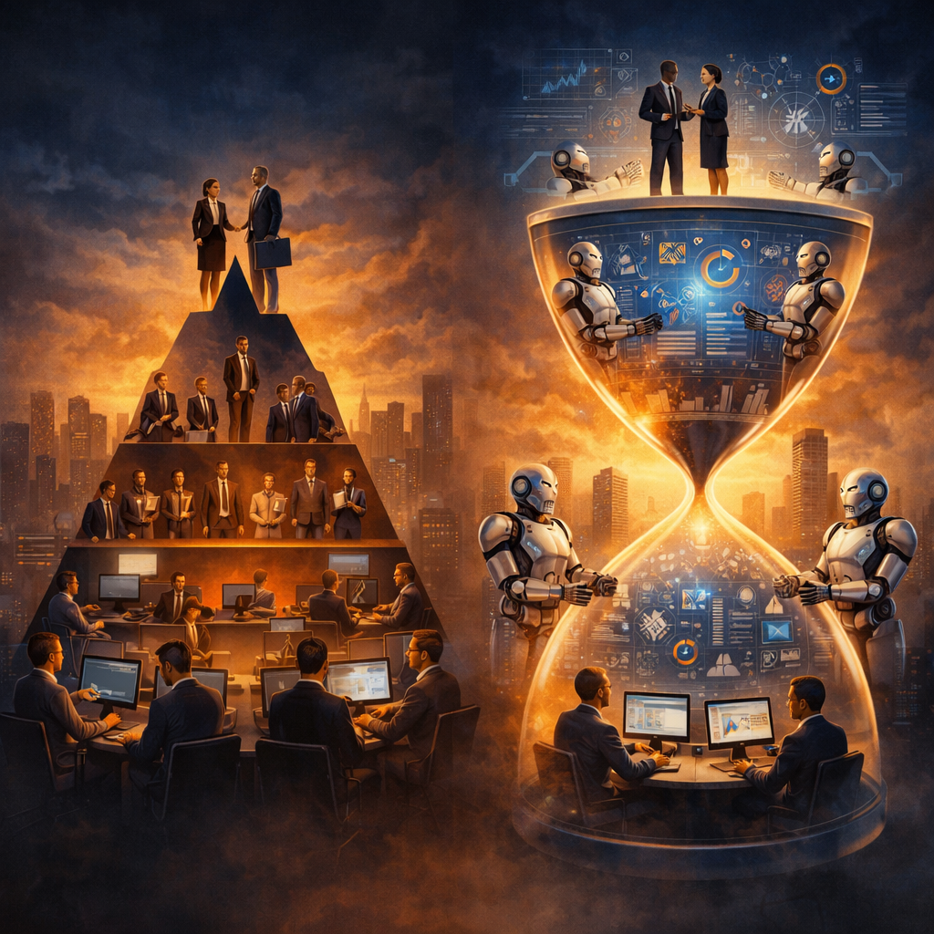 The hollowing middle represents a profound shift in organizational design, one that extends beyond automation to affect how work is structured, how decisions are made, and how leaders are developed over time.