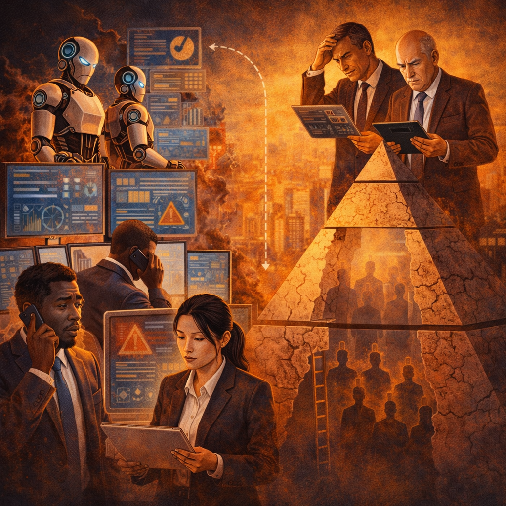 And unlike the disappearance of entry-level roles, which affects how careers begin, this shift affects how organizations function at their core, because it removes the very layer that translates strategy into execution and ensures that complex systems operate cohesively.