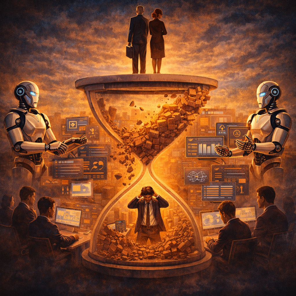 These capabilities overlap almost perfectly with the responsibilities traditionally carried out by mid-level professionals, which explains why this layer is particularly vulnerable—not because it lacks value, but because its functions are highly compatible with automation.